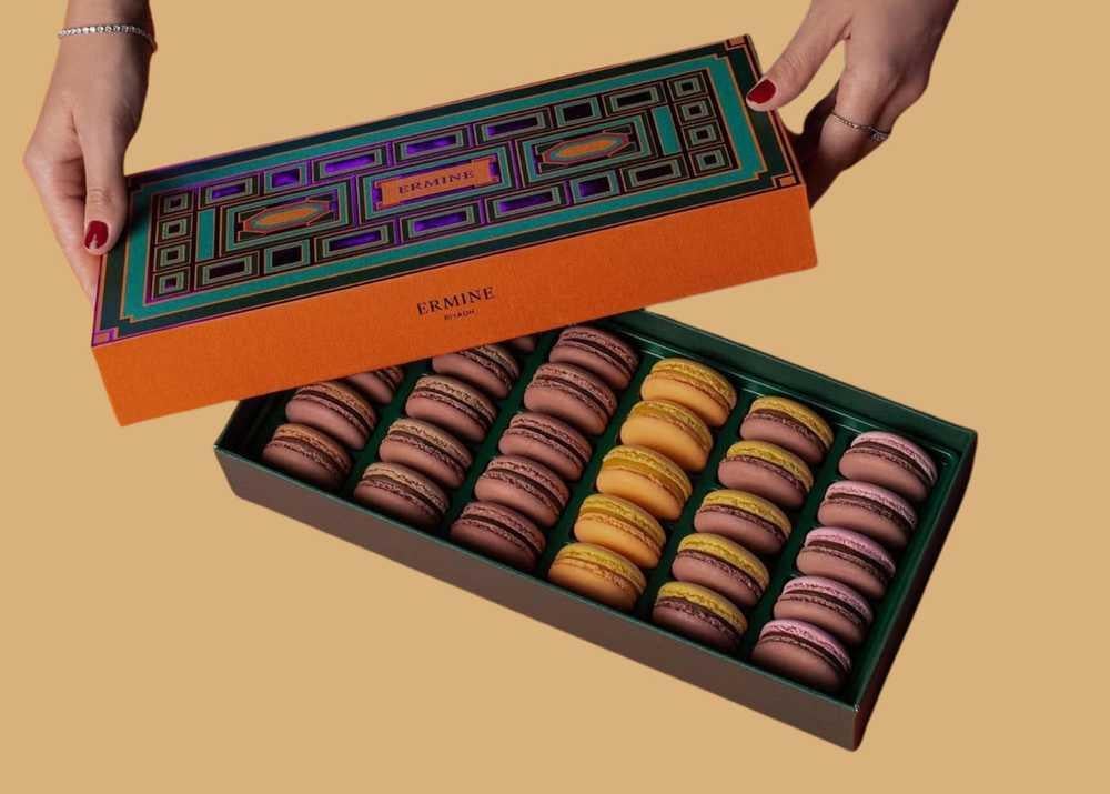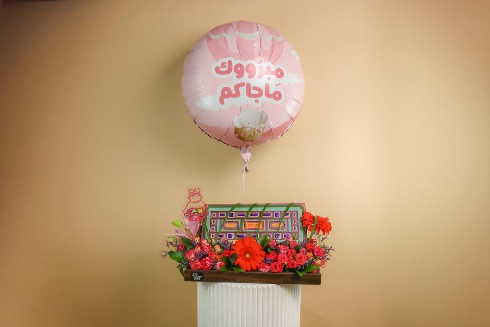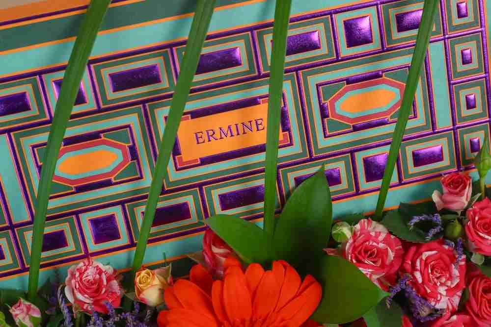 تنسيق فاخر ينبض بالألوان الزاهية والتفاصيل الفنية، يجمع بين علبة شوكولاتة Ermine بتصميمها العصري الفريد وباقة ورد طبيعي من الورود الصغيرة والليليوم والجيربرا البرتقالية، موزعة بعناية في صندوق خشبي أنيق. مثالي للإهداء في المناسبات الراقية، ويترك أثرًا بصريًا ومذاقًا لا يُنسى.