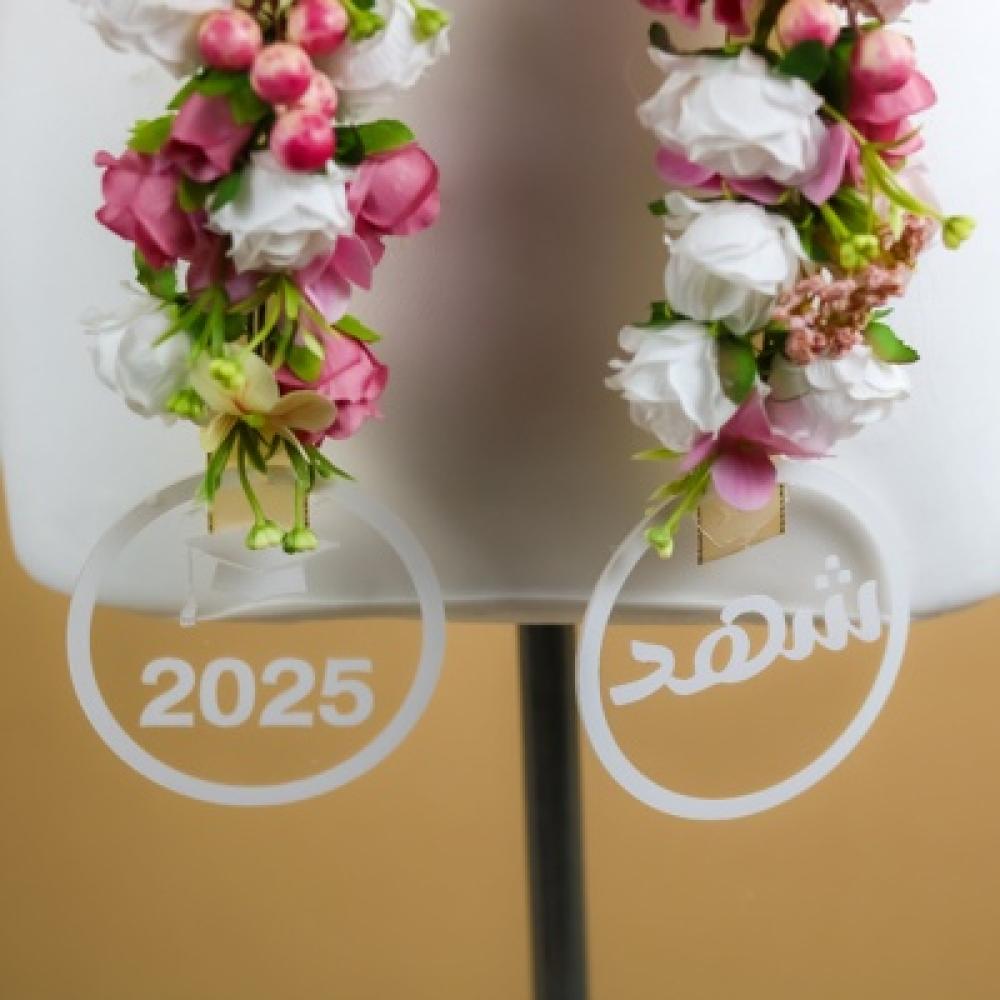 عقد "طوق التخرج بزهور البنفسج" يتميز بتصميم فريد يجمع بين الأناقة والبساطة، مع أزهار صناعية بنفسيجي ووردي تم تصميمها بشكل طبيعي وواقعي. يأتي مع شريط ساتان أبيض عريض لإضفاء لمسة من الرقي. هذا العقد هو الخيار المثالي لإضفاء لمسة من السحر والفخامة على إطلالتك.