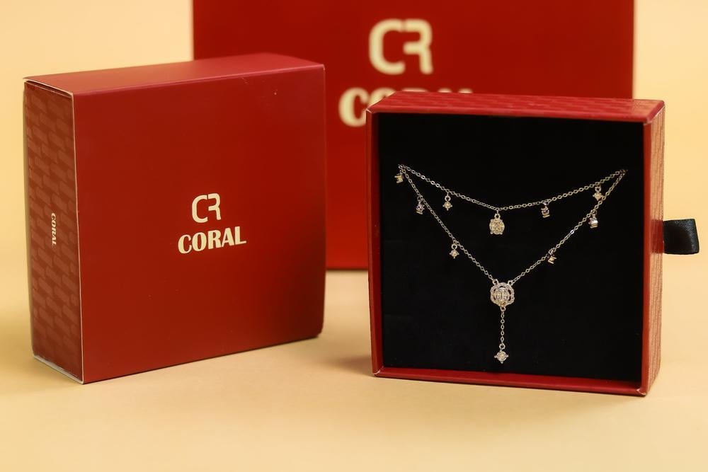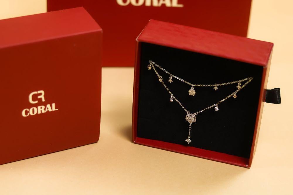 عقد كورال بطبقتين هو الخيار المثالي لمن تبحث عن إضافة لمسة فاخرة وأنيقة إلى إطلالتها، يتميز العقد بتصميمه العصري والأنيق الذي يتكون من طبقتين، ما يضفي لمسة من التميز والجمال على من ترتديه كما يأتي العقد داخل علبة حمراء أنيقة تحمل شعار كورال، مما يجعله هدية مثالية ومميزة للمناسبات الخاصة.
