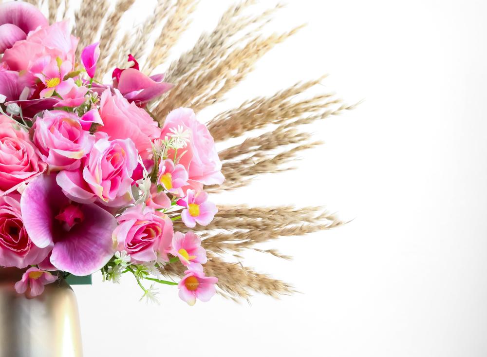 سيقان القمح المجففة التي تمنح التصميم طابعاً طبيعياً ريفياً.
