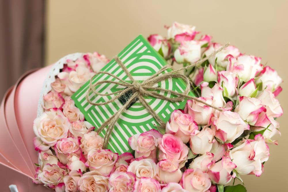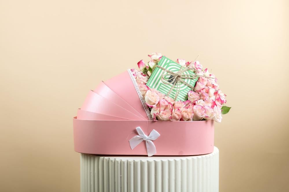 "مهد مولوده بشوكولاتة باتشي وباقة ورود جوري